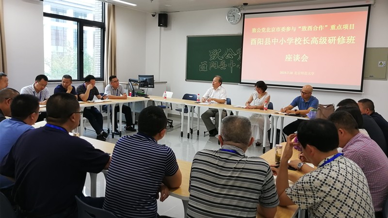 7月15日至19日,致公黨北京市委2019年參與“致酉合作”重點項目——酉陽縣中小學(xué)校長高級研修班在北京師范大學(xué)沙河校區(qū)舉辦,來自酉陽縣50所學(xué)校的50名中小學(xué)校長參加培訓(xùn)。 本次培訓(xùn)是市委發(fā)揮教育專委會專業(yè)優(yōu)勢,依托北師大深厚的人文底蘊和教育學(xué)、心理學(xué)等優(yōu)勢學(xué)科,以及北師大經(jīng)管學(xué)院在管理方面的先進理念和專業(yè)的運營服務(wù)能力,將致公黨中央關(guān)于精準(zhǔn)扶貧的任務(wù)落到實處的重要舉措。7月15日上午,致公黨中央社會服務(wù)部巡視員李曼出席開班儀式,對致公黨北京市委一直以來積極參與致公黨中央的社會服務(wù)工作表示肯定,對參加本次培訓(xùn)班的學(xué)員提出了期望;北京師范大學(xué)副校長周作宇在開班儀式上勉勵全體學(xué)員“帶著問題來、帶著問題去”、“帶著初心來,帶著信心去”、“帶著熱情來,帶著激情去”;市委副主委安雪暉對承辦本次研修班的北京師范大學(xué)、對給予培訓(xùn)班大力支持的中國社會福利基金會城鄉(xiāng)發(fā)展基金表示感謝,并表示市委將一如既往的參與“致酉合作”,做好精準(zhǔn)扶貧工作。 本次研修班師資陣容強,既有高水平的專家學(xué)者,也有管理實戰(zhàn)經(jīng)驗豐富的中小學(xué)名校校長,課程設(shè)計新穎,既有宏觀教育理念的學(xué)習(xí),提高政策水平,也有現(xiàn)場教學(xué),開闊學(xué)員視野,通過5天8場專題講座、2次現(xiàn)場教學(xué)以及每天一次的分組總結(jié)分享活動,促進教育思想觀念轉(zhuǎn)變和更新,促進校長決策、管理等多方面能力提升。為了使更多酉陽教育工作者能夠同時接收到高水平授課,本次研修班還為參訓(xùn)的50所學(xué)校的700余名教學(xué)干部和教師開通了三場關(guān)于教育心理學(xué)、課程建設(shè)、構(gòu)建學(xué)習(xí)課堂的遠程直播教學(xué),受到酉陽當(dāng)?shù)亟逃ぷ髡叩臍g迎。 7月18日,市委社聯(lián)處、市委教育專委會與20余名學(xué)員代表舉行座談會,學(xué)員們表示,一是對致公黨北京市委給予酉陽一如既往的關(guān)心厚愛表示衷心感謝,二是對師大這次培訓(xùn)的組織、課程安排、生活服務(wù)等十分滿意,三是大家認(rèn)為每位學(xué)員在培訓(xùn)中都勤奮積極、遵守紀(jì)律、收益頗豐,四是大家表示將把所學(xué)所悟帶回自己的學(xué)校,落實到實踐中去,五是希望致公黨、北師大繼續(xù)扶持和關(guān)愛酉陽教育事業(yè),建議進一步創(chuàng)新形式拓展渠道,讓培訓(xùn)面更廣,實效性更強。