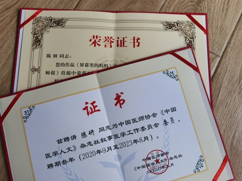 由中國醫(yī)師協(xié)會、中國醫(yī)師協(xié)會人文醫(yī)學專業(yè)委員會、白求恩精神研究會、《中國醫(yī)學人文》雜志社共同主辦的第四屆中國醫(yī)學人文大會于2020年9月26-27日在京召開。致公黨昌平工委黨員陳妍的作品《屏幕里的媽媽》被評選為《中國醫(yī)學人文》雜志、《醫(yī)師報》2019-2020年度“優(yōu)秀作品”,同時陳妍被中國醫(yī)師協(xié)會《中國醫(yī)學人文》雜志社敘事醫(yī)學工作委員會聘為委員。